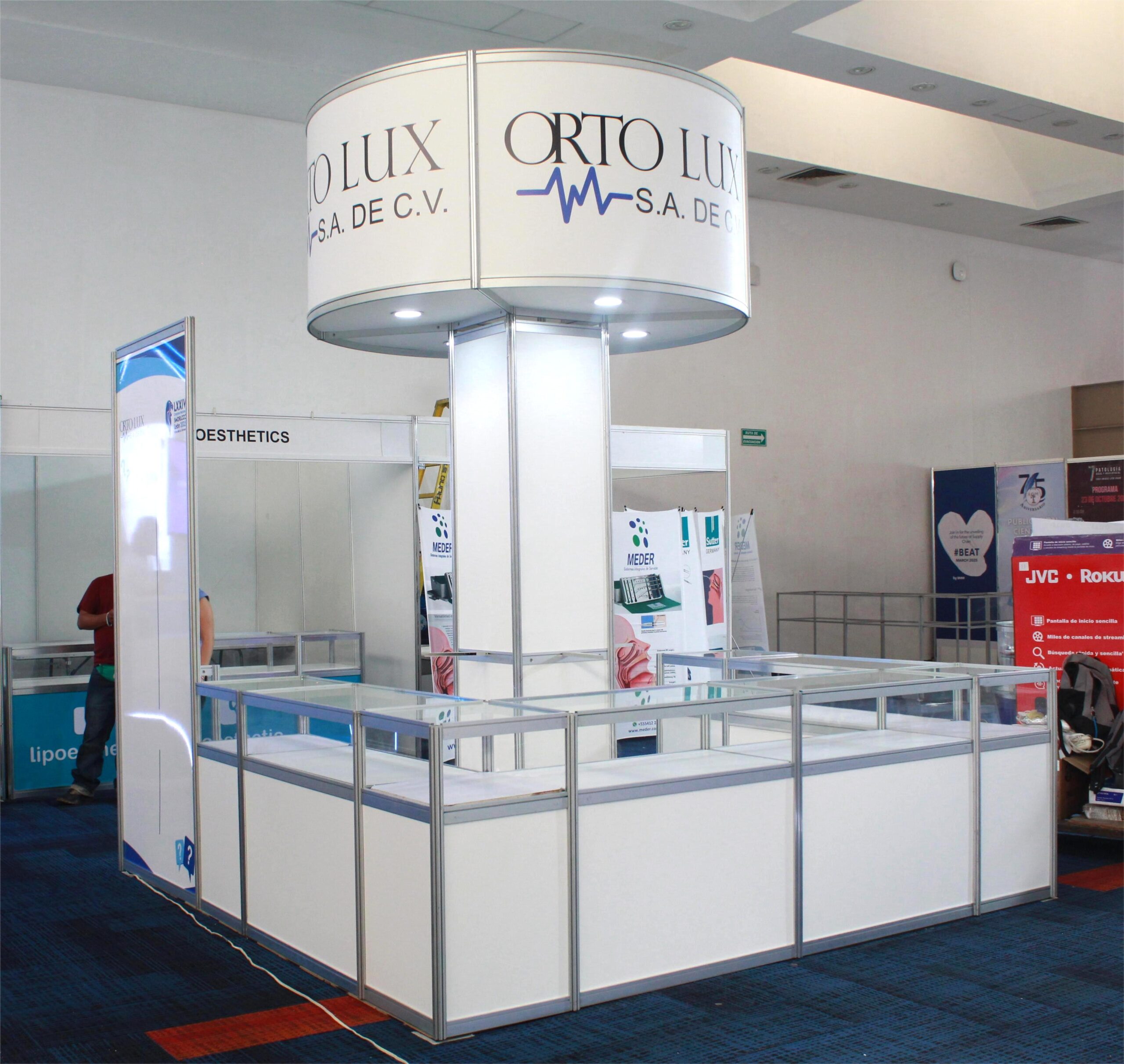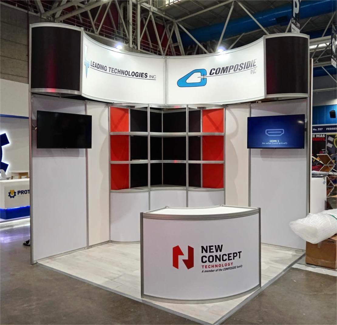 Permiten armar tu stand a la medida que requieras, su sistema conformado por paneles de aluminio curvos y rectos, lo hacen adaptable y construible.